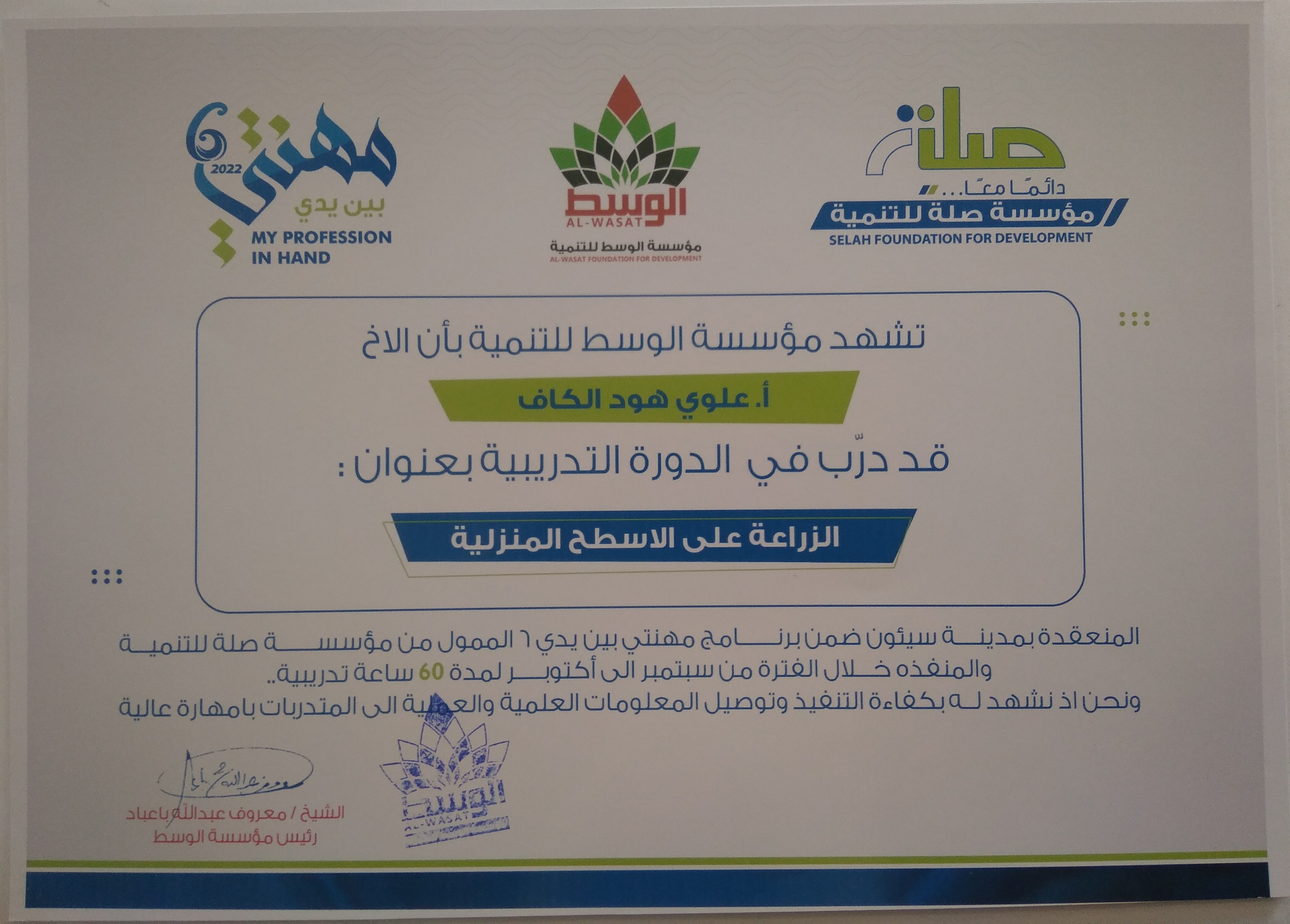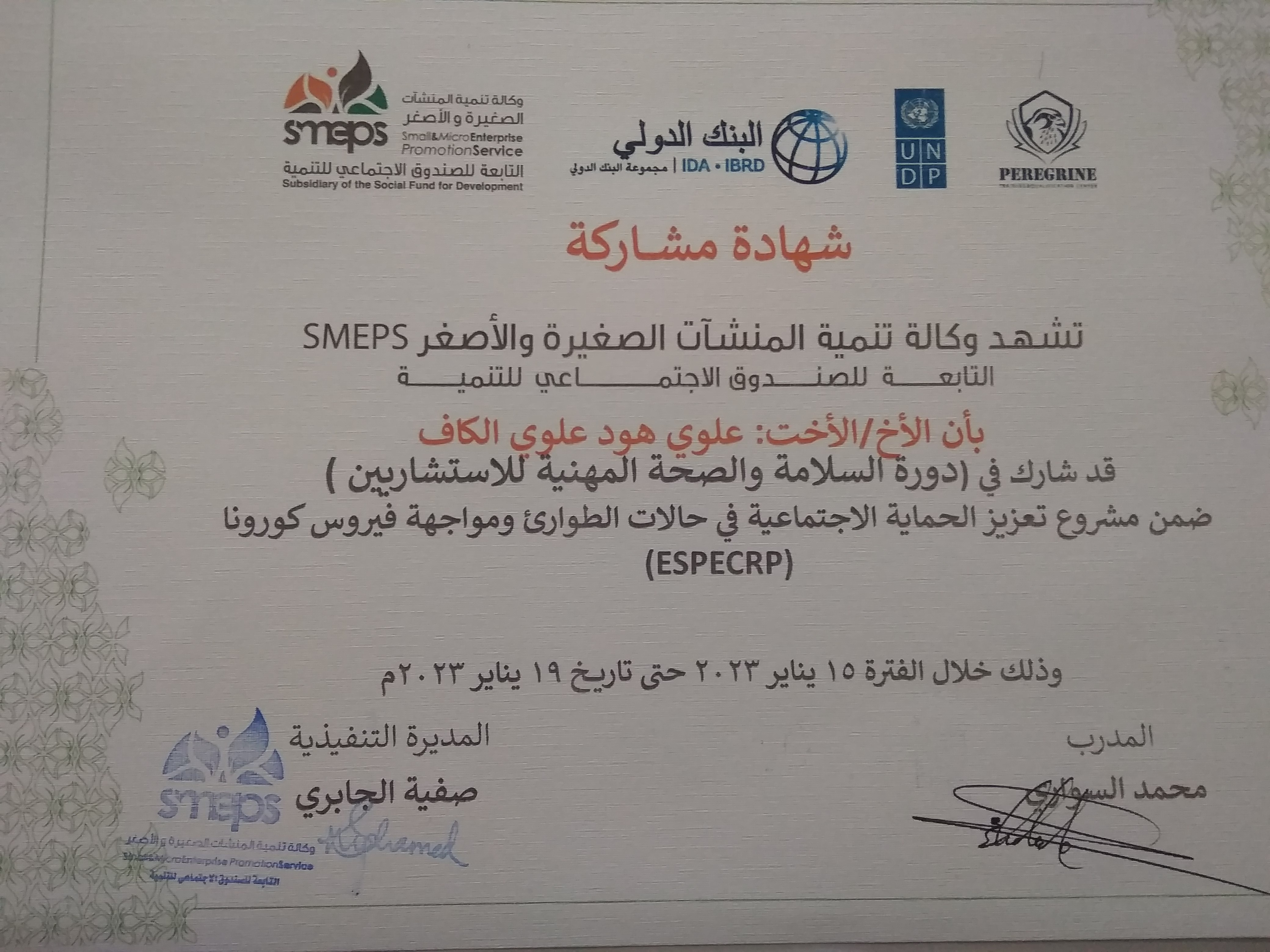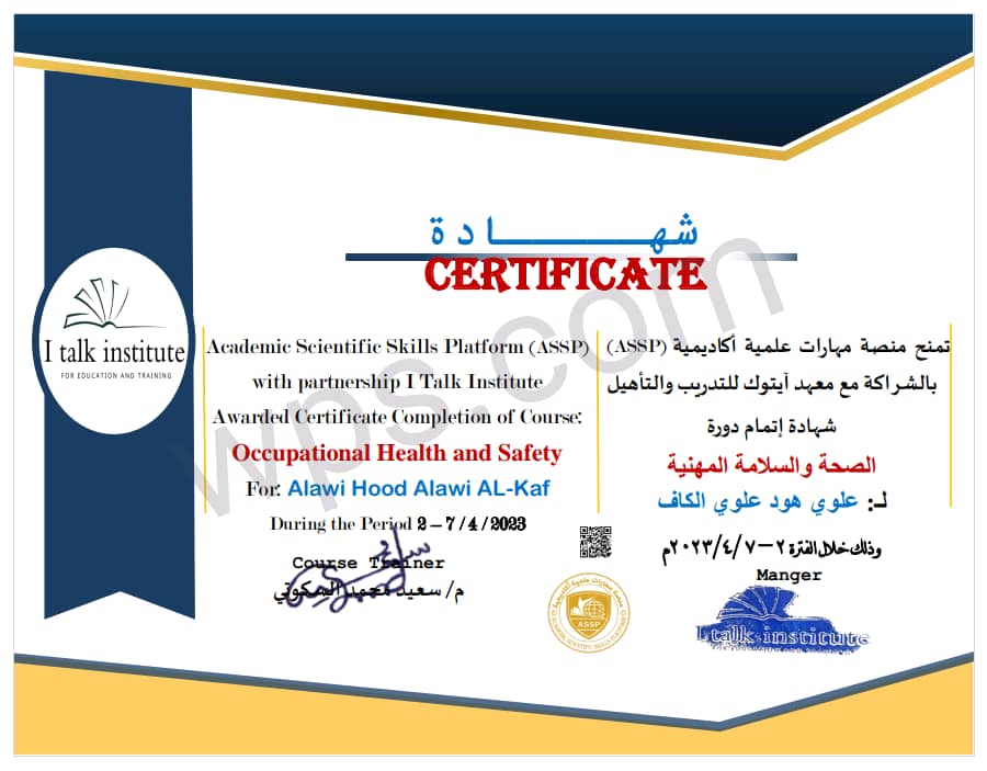 التخصص : مدرب و استشاري