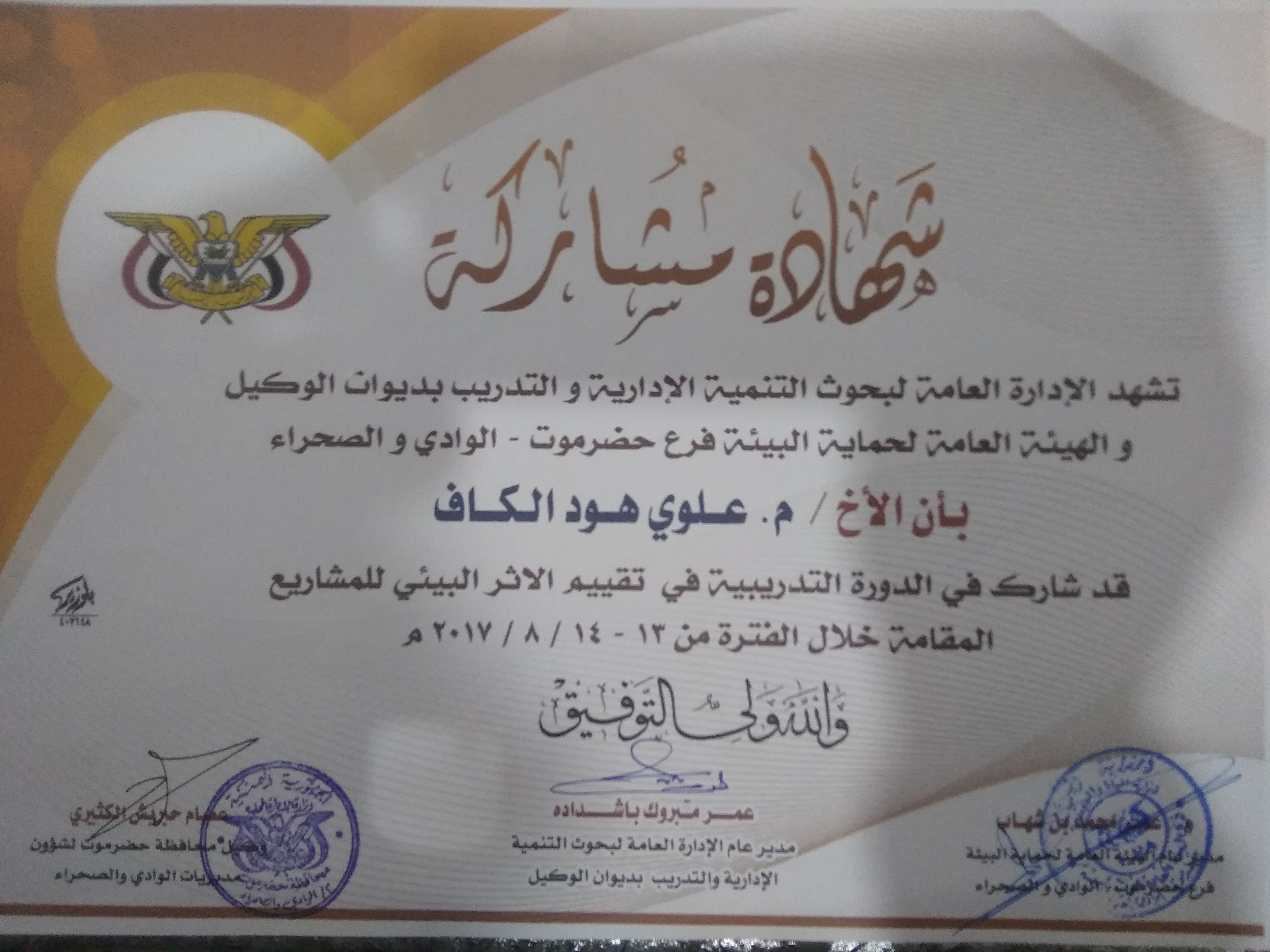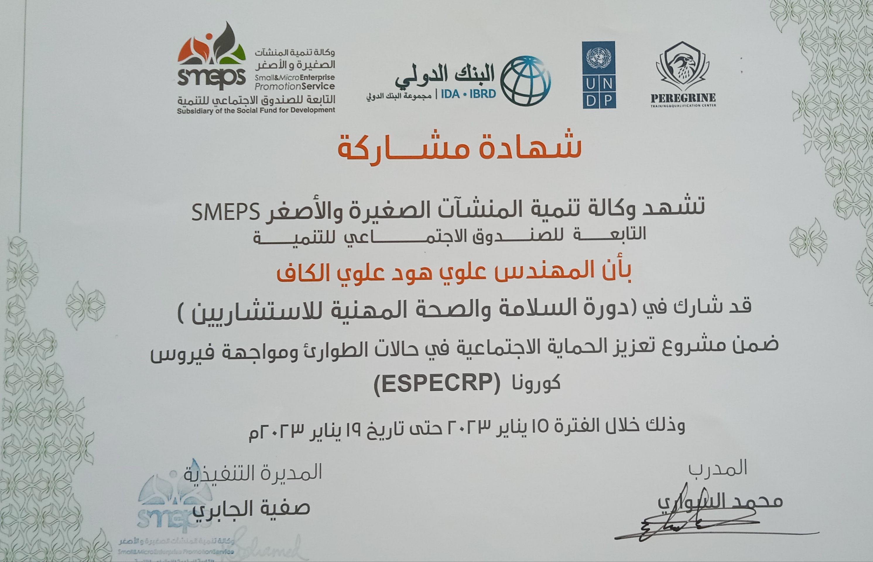 التخصص : مدرب و استشاري
